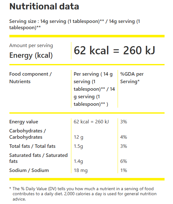 Sugar, aerating agent (vegetable fat, glucose syrup, caseinate, emulsifiers esters of mono and diglycerides of fatty acids and stabilizer tetrasodium pyrophosphate), glucose, whey, coconut pulp, stabilizers guar gum, carboxymethyl cellulose and carrageenan, flavoring, anti-caking agent calcium carbonate.